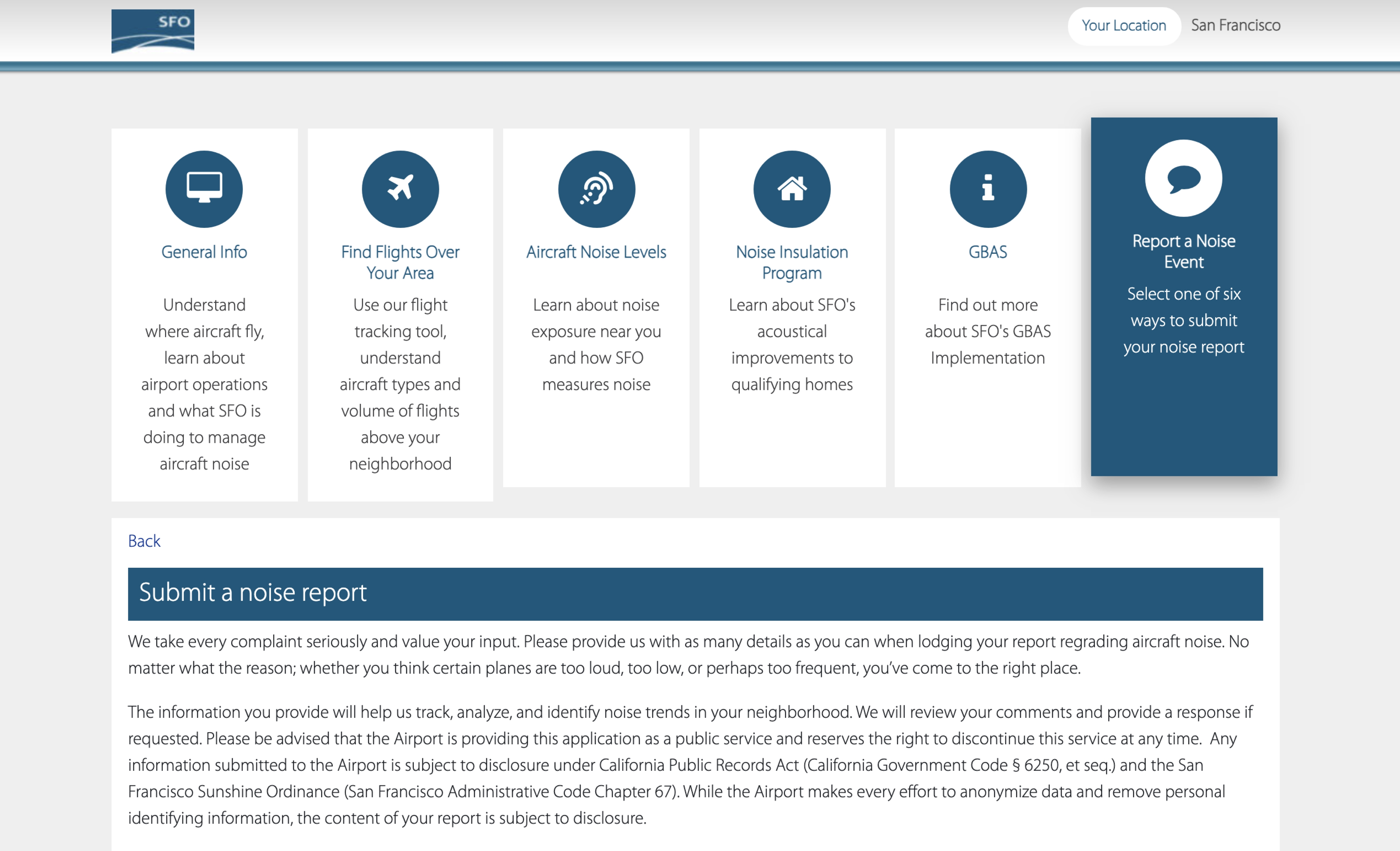 Location-specific online complaint management system for noise observations in the community allows airport operators to focus on other business activities.